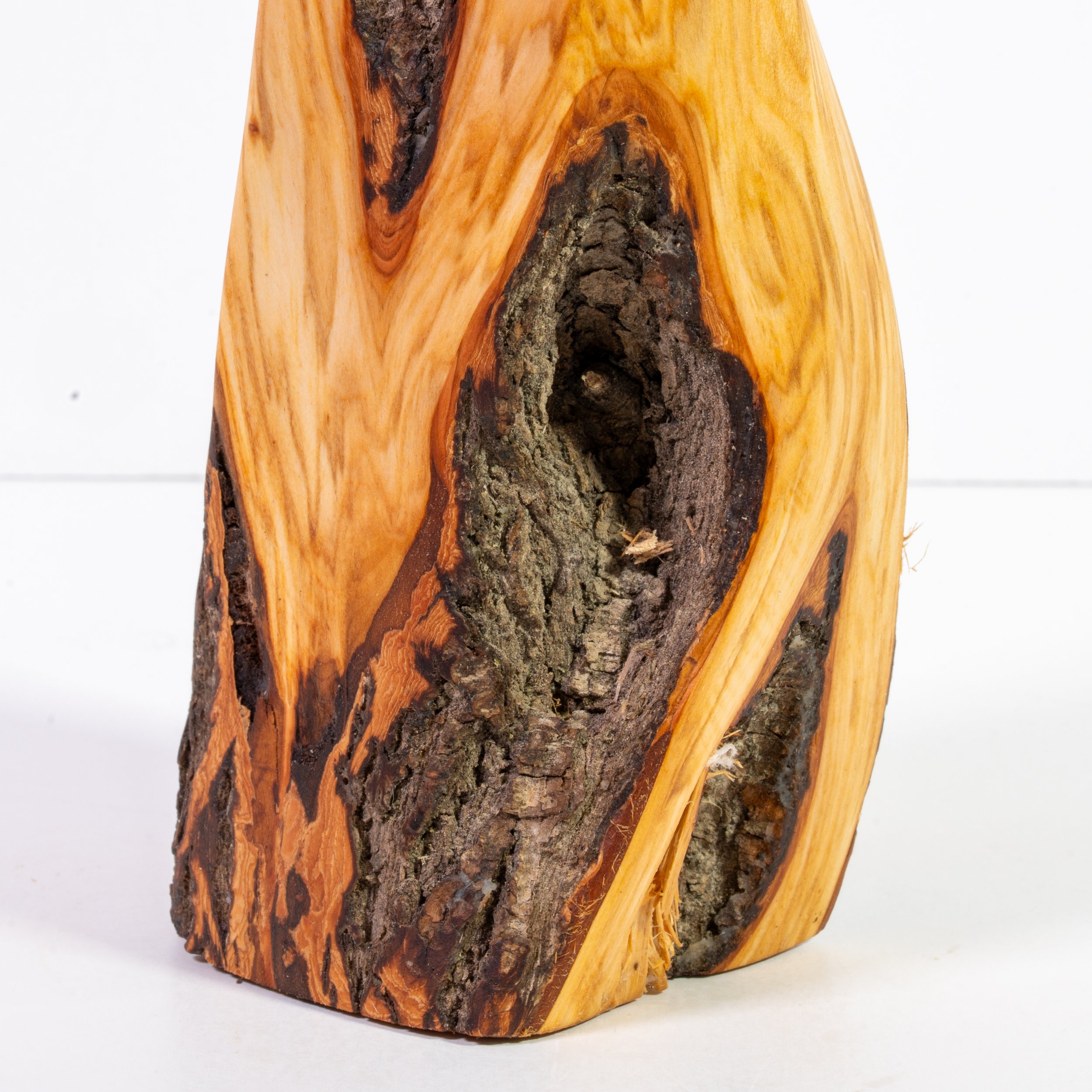 Harvested from riverbank deadfall along the Assiniboine, this vase is part of an ongoing conversation with nature. Small vases meant for dried flowers. The bark carves deeper than I ever could. Its gnarled valleys and smooth golden ridges are a reminder that beauty doesn’t need to be coaxed… it’s already there, waiting. My role is simply to listen, reveal, and try not to mess it up. The contrast between raw bark and polished grain speaks to effort and grace, wildness and craft. A piece that’s as much homage as object.